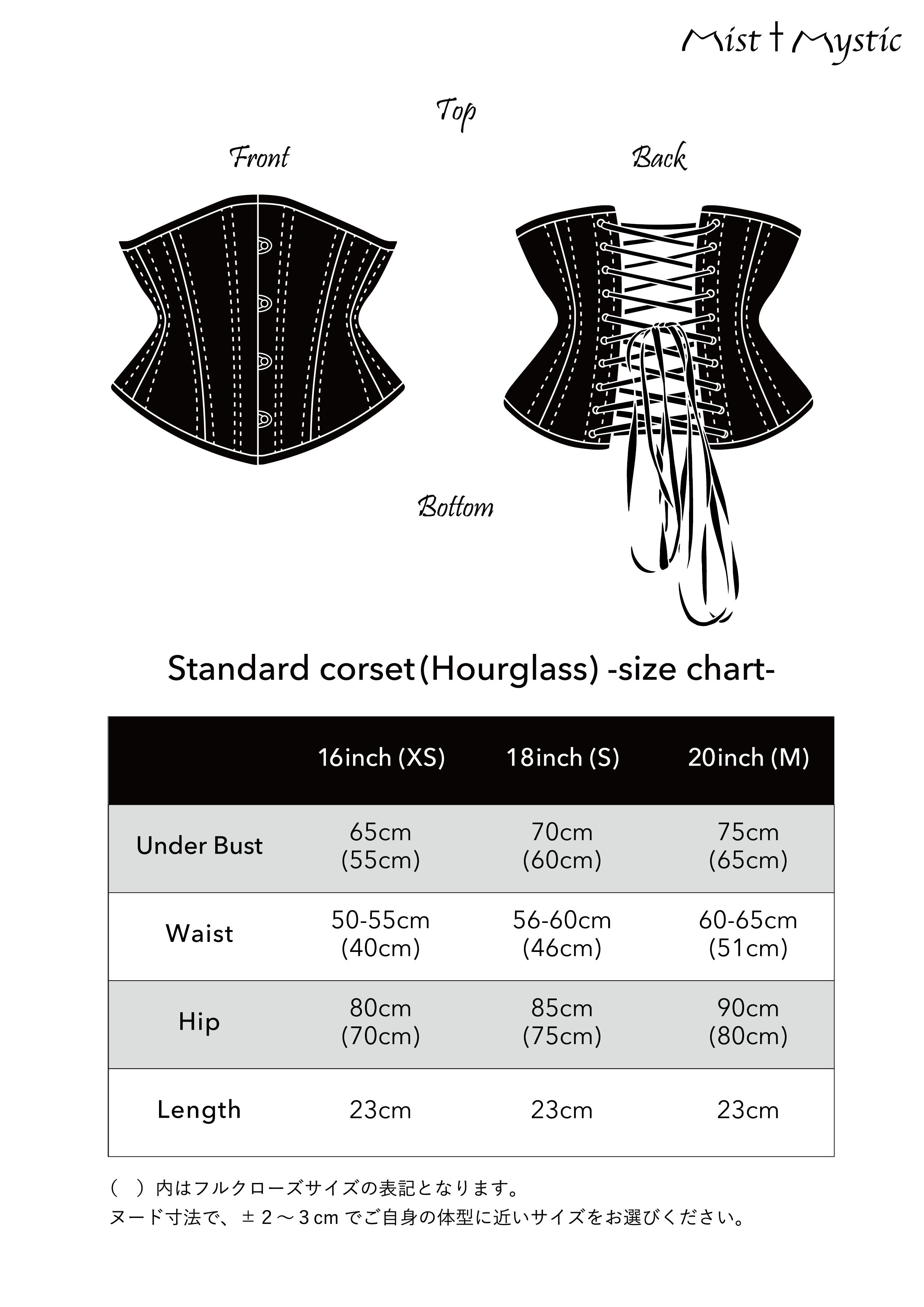 サイズはサイズ表、スタンダード(砂時計型)を参考にしてください